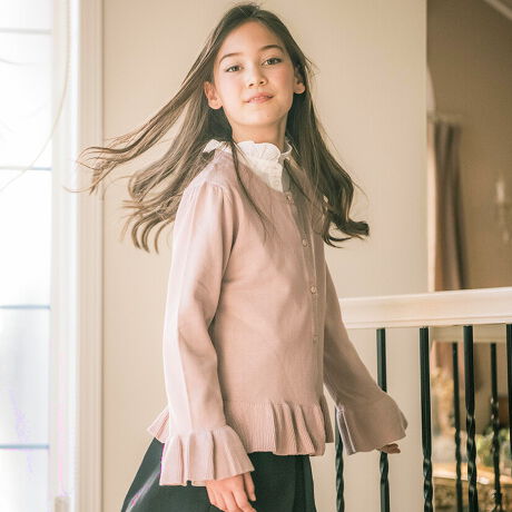 袖口のヒラヒラがとても可愛いのにシンプルで合わせやすく重宝しています。軽いのでサラッと羽織れるのも良いです。