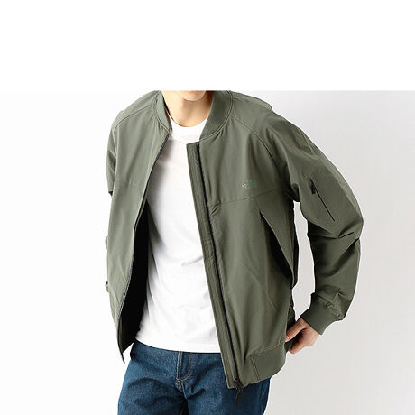 ストレッチ性が高いソフトシェルを使用したMA-1モデルのジャケット。今シーズンはシルエットを見直して、腰まわりにボリュームを持たせることで、よりボンバージャケットらしいラインに仕上げています。裏地には、繊維内に水分を保持しないためドライ感があり、通気性も備えたポリプロピレンのメッシュ生地を配し、着心地の良さを高めています。急な雨に対応できる表面撥水加工を施すなど、アウトドアウエアの機能性も取り入れた1着です。