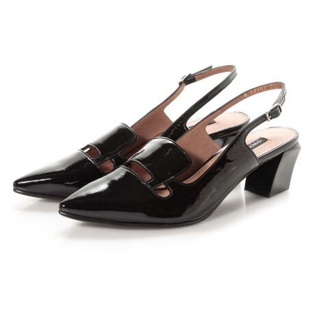 ワークスのworksエナメルバックストラップパンプスワークス(WORKS)のバックストラップパンプス。60年代調のクラシックなデザインを、透明感のあるゴードエナメル(山羊革)を使用してモダンに表現したミドルヒールパンプスです。[型番:12182]