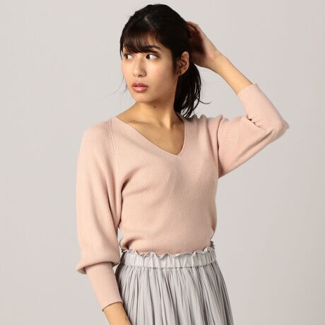 肩周りのゆったりしたラグラン袖が今年らしいこなれ感を演出してくれるリブ二ット。