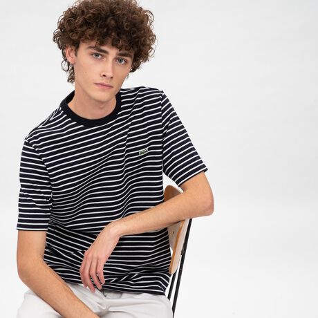 ベーシックデザインのクルーネックTシャツを、ブランドのアイコンマテリアルである鹿の子素材でアレンジ。マリンスタイルを彷彿とさせるバイカラーボーダー採用で、春夏スタイルをスポーティーかつ爽やかに演出する1枚です。左胸にはトレードマークのワニロゴワッペンを配置しています。