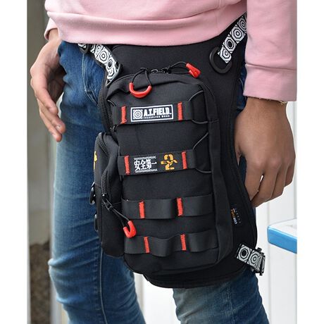 太もも辺りに装着する珍しいタイプのバッグ、
