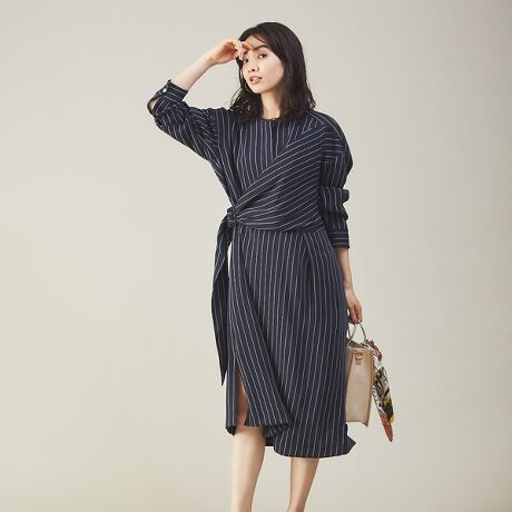 ストライプのシャープさとモードなデザインスタイリッシュな大人のデイリーワンピースに仕上げました。