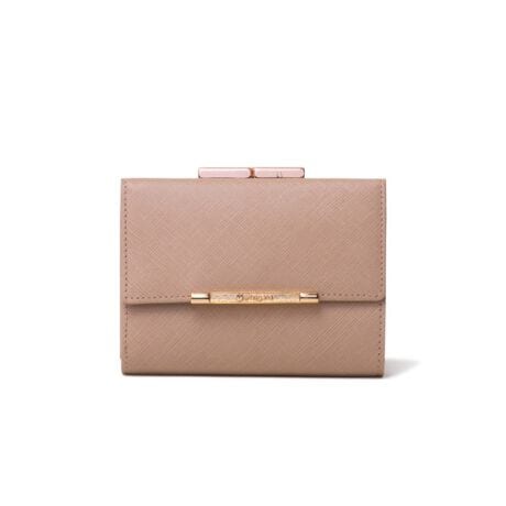 牛革に細やかな型押しを施しブランドロゴ入りの金具をポイントにしたシンプルながらも上品なお財布シリーズです。細かい型押しを施すことで、傷が付きにくく丈夫な作りになっています。