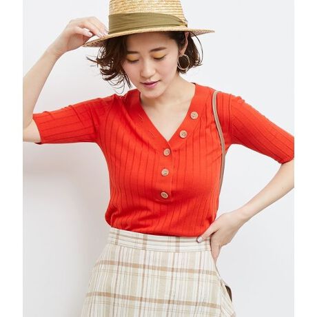 【大きめボタンがアクセント。大人な着こなしを楽しめるリブニット】