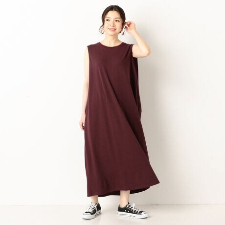 ノースリーブのワンピースはたっぷりとした身頃とサイドにさりげなく入ったタックがポイント。