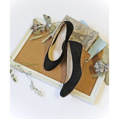 春らしく優しい印象の起毛素材にナチュラルな印象のウェッジソールを合わせた軽やかなデザイン。シンプルなので合わせを選ばず、ラウンドのつま先は履きやすく疲れません。