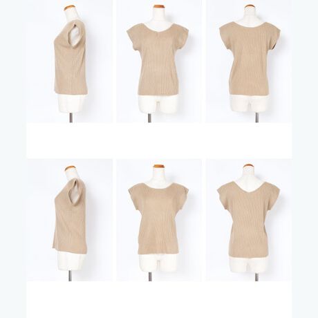 前後2wayで着用出来るフレンチスリーブリブニット。