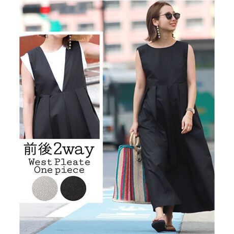 コカの薄手素材前後2wayウエストプリーツワンピースcocaオリジナル