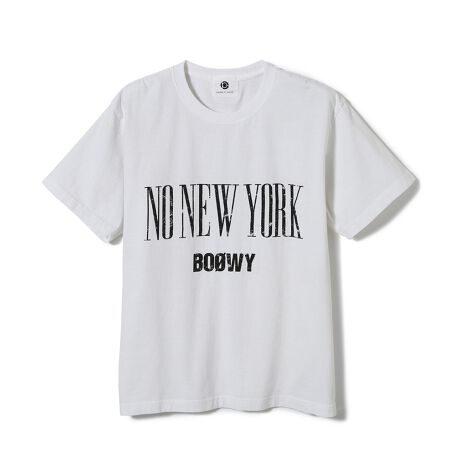 BOOWYの数ある人気曲の中から「B・BLUE」「NO NEW YORK」の2曲を使用。ブラックとホワイトのモノトーンカラーのTシャツに、それぞれの曲名(タイトル)をプリントした今回だけの特別モデルです。