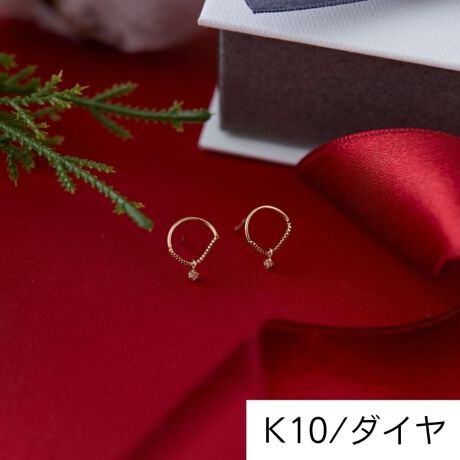 【サークルモチーフにダイヤモンドがゆれて輝くK10ピアス】