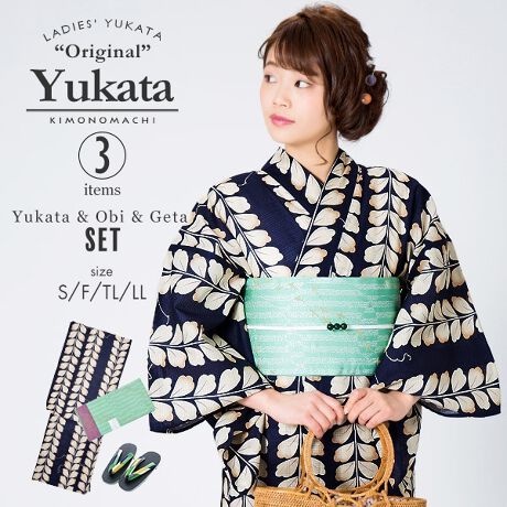 京都きもの町のKIMONOMACHIブランド浴衣、浴衣帯、下駄の3点セットです。モデルのコーデ通りの浴衣と帯と下駄もコーディネートしてお届けします(下駄はおまかせとなります。写真の下駄は一例です)。下駄のサイズはFサイズとなります。組み合わせでお届けしますので、コーディネートも安心です。夏祭り、盆踊り、花火大会、夏フェスなどの夏のイベントに。是非、この夏、浴衣で楽しんでください。