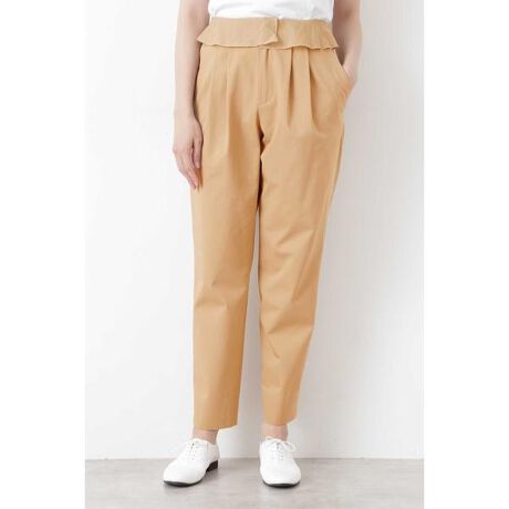T.Yamai paris はパリを拠点とし、ベーシックな中にもどこか懐かしさやフェミニンで上品なデザインのコレクションブランドです。ウエストのペプラムが印象に残るテーパードパンツです。ナチュラルで上品なで清涼感のある素材をです。シルエットはパリの街が似合う少しリラックス感のあるサイズ感のシルエットにこだわりました。