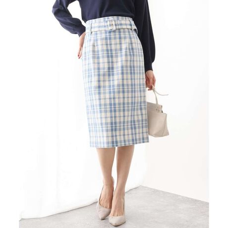 全体をすっきりとキレイにまとめたミディ丈タイトスカート。柄物が苦手な方でも挑戦しやすい上品なチェック柄はカジュアルにまとめるにもきちんとコーデにも大活躍します。大きなバックルが特徴の共布ベルトはウエストを引き締めスタイルアップを叶えてくれる効果も。バックウエストもゴム使用ではき心地がよく、これからどんどん出番が多くなるひと品です。