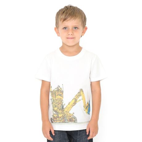 風合いの良い天竺を使用したベーシック型のTシャツ。2台の大きなショベルカーが握手をしているユニークな作品。※商品画像と実物では多少色味に違いがある場合がございますので予めご了承下さい。※発売日や販売状況は店舗によって異なります。 #おそろいコーデ #親子お揃い