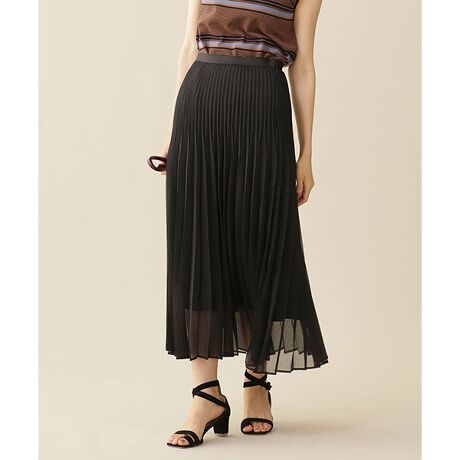 軽やかな透け感のあるオーガンジー素材を使用したエレガントなプリーツスカート。上品な光沢感が大人な印象に仕上げてくれます。二重に重なった変型プリーツが履くだけでこなれ感を演出。夏にはTシャツやサンダルとも相性◎。ブラウスを合わせたフェミニンスタイルやカットソーを合わせた少しカジュアルなスタイルまで幅広く着回せます。長めのスカート丈も今っぽく、大人カジュアルにかかせないアイテムです。