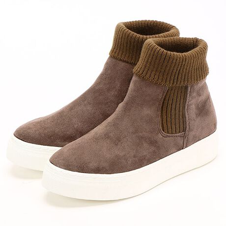 リブニットを折り返しても伸ばして履いても可愛いスニーカーです♪インソールには低反発素材を使用。履き心地に徹底的にこだわりました!ボリューム感のあるフォルムはトレンドの厚底タイプ。歩行時の衝撃が緩和されやすい上に、軽量設計で普段使いにもお出かけ用にもおススメの1足です。