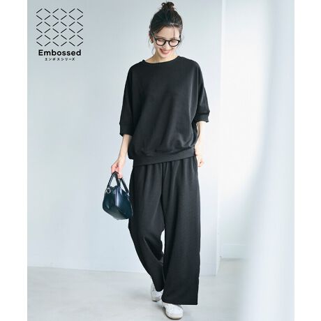 リラックス感のある着心地でデイリーに着回しできるエンボスパンツ