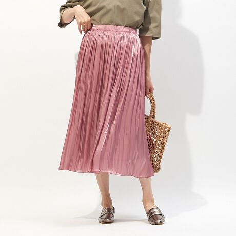 つややかな光沢感がある生地を使った人気のギャザースカート。