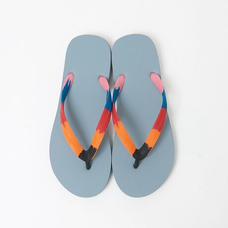 カラフルなレインボー柄からシンプルなカラートングで足元にアクセントを。