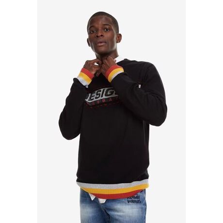 個性的なオシャレを楽しめるメンズジェネレーションへ!コットン 100% で編み上げたラウンドネックのセーターは、袖口と裾部分がカラフルなリブ仕上げ。コントラストが目に鮮やかです。中央にはカジュアルに Desigual のロゴをあしらっていて、自分らしさを何よりも大事にするメンズにぜひ着てもらいたいアイテムに。