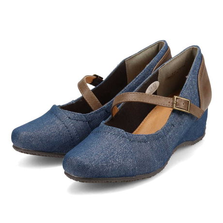 どんな服装にも合わせやすい斜め甲ベルトがポイントのスクエアウェッジパンプスです。折り込まれたプリーツデザインが上品な足元をつくります。靴の内側はふわふわのクッションがついた中敷とジャージ素材で足当たりもやわらか。見た目はすっきりスマートに見えますが履くとゆったりなのもうれしいポイントです。