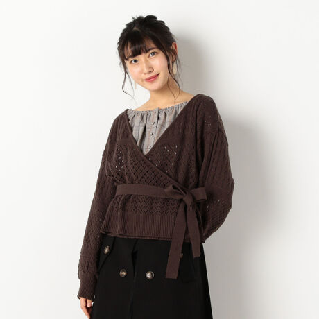 アルシーヴ(archives)のA−透かし編みカシュクールカーディガン。