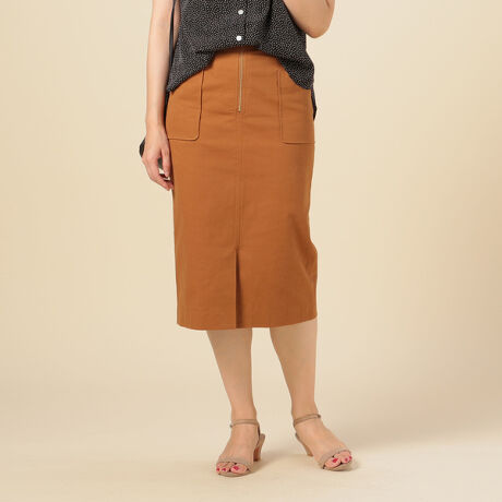 フロントファスナーがさり気ないアクセントになったすっきりシルエットのタイトスカート。