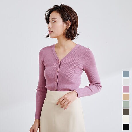・程よく体にフィットし、女性らしいシルエットを醸し出すVネックカーディガン