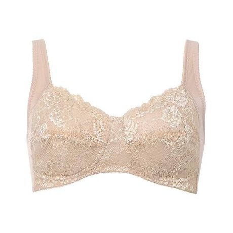 ●脇から背中のラインをすっきり 脇からバックが一枚布で、サイドをすっきりサポート●ラクなつけごこち 年齢による体型変化に対応した独自のパターン設計(アンダー部分全体にストレッチ性があるので圧迫感を軽減)●やさしい肌ざわり カップ肌側、バックは綿混素材を使用年齢とともに変化する体型にやさしく寄り添いながら、ラクなつけごこちで毎日を快適にサポートするノンワイヤーブラ。「しめつけが苦手」「とにかくラクに着用したい」という方におすすめです。アンダーはストレッチ性にすぐれ圧迫感を軽減。ストラップは伸縮性がありくいこみにくく、肩がラクな幅広タイプです。脇からバックにかけての一枚布が、はみ出しが気になる脇から背中のラインをすっきりなめらかに。普段使いしやすいシンプルなデザインにフラワーモチーフのレースをあしらって華やかさをプラスしました。●詳細情報ワイヤーなしホック後ろ留め(A・B・C70-85)ホック2段3調節(D・E, A・B・C90-100)ホック3段3調節パッド受けあり/パッドなし※お洗濯は、必ず「取扱い表示」にしたがってください。