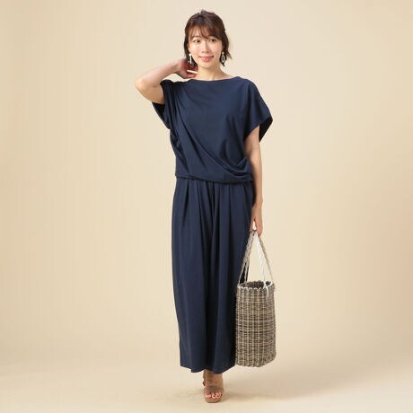 落ち感のある滑らかなカット素材は肌馴染みが良くラクチンな着心地がポイント。