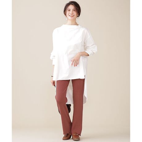 一点投入するだけでトレンド感のある着こなしが完成するリブパンツ。リラクシーなルックスがこなれ感のある大人カジュアルスタイルに。裾にかけて絶妙にフレアになっており、足のラインを綺麗に見せてくれます。伸縮性のある素材やウエストゴム仕様でストレスなく着心地が抜群なのも嬉しい。クローゼットに一枚あると便利なアイテムです。