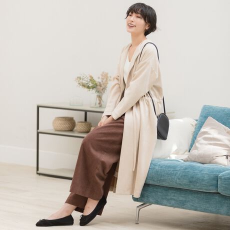 ストレッチ性のある柔らかで季節感のあるマットな素材を使用。 程よくロングな丈感はどんなボトムともバランス良く羽織ることができ優秀な着まわし力◎