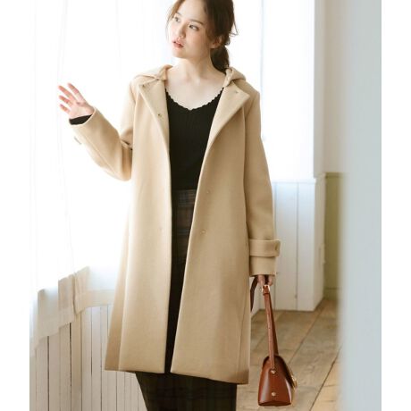 【蓄熱+静電気防止】フレンチウール混ベルテッドフード取り外しノーカラーコート