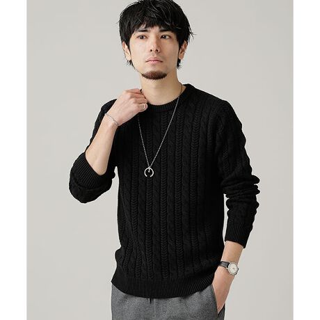 毎シーズンご好評頂いているコットンケーブルニットをアップデート。今回はシルクをブレンドする事により、肌触りにしなやかさをプラス。編地はしっかりと立体的に柄を表現する事で、高級感を出したこだわりのニット。脇の編地を切り替えたデザインもポイント。コットン素材なので、秋口〜冬〜春までとロングシーズン着用も可能です。