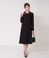 おしゃれなデザインのブラックスーツなので同窓会、謝恩会、卒園式、卒業式や、コサージュを付けて入園式、入学式にも着用できるママスーツです。