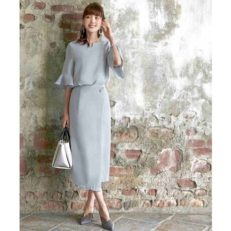 フレアスリーブとラップスカートがエレガントな少し大人なセットアップ。