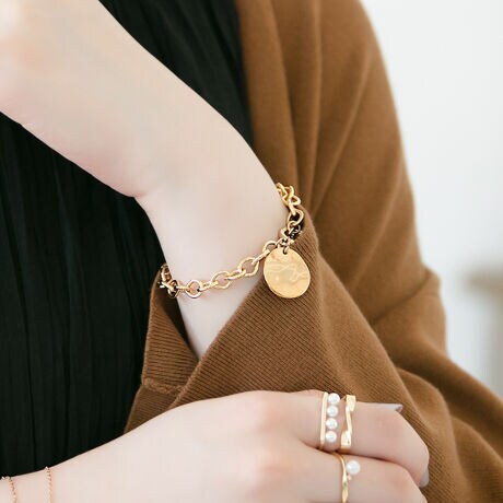 ボリュームのあるチェーンブレスレットは1点投入で手もとを華やかに。