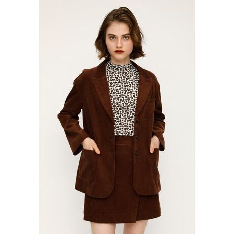 細めのコーデュロイを使用した、秋らしさのある一枚。肩から身幅にかけて全体的にオーバーめなシルエットにすることで、ほっこりしすぎずこなれた印象に。同素材のボトムとセットアップで合わせたり、カジュアルにデニムでスタイリングするのもおすすめ。