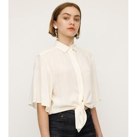 [型番:030CSZ30-7470]クロップ丈のコンパクト感が女性らしいデザインシャツ。ハイウエストボトムや、ワイドパンツなど、ボリュームのあるボトムとのスタイリングがオススメ。