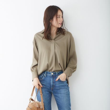 自然と繊細なドレープが出るので、そのままでもボトムスに軽くインした着こなしもきれいに決まります。
