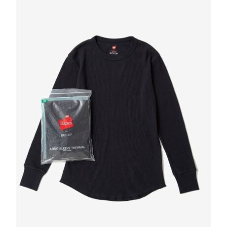 1901年「コンフォート(快適さ)」をコンセプトに、アメリカで誕生以来、アンダーウェア、インナーウェアとして不動の人気を誇るブランド「Hanes(ヘインズ)」。毎年定番人気のBIOTOP別注シリーズより、2019AWシーズンは、かつて米軍に商品供給していたという由緒正しい歴史を持つ名品「サーマル」のトップスが登場します。