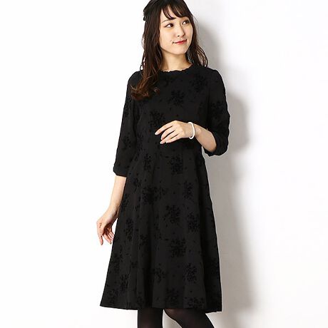 花柄にフロッキー加工されたウエストマークのキレイめワンピース。少しハイウエストのデザインで足長効果は抜群!なのにウエストまわりはゆったり楽チンなシルエットとなっております。一枚でキマル7分袖のワンピースは、羽織りものいらずでうれしいアイテム。首まわりは開きすぎず、フリル使いがかわいい。袖口にはリボンでワンポイントに。シフォン素材にフロッキー加工でベロアの花柄が施してあるオシャレなアイテム。結婚式や2次会、パーティー、フォーマル、セレモニーにも対応できるドレスです。