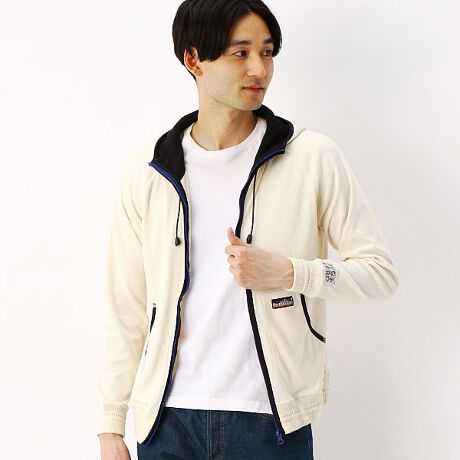 ファスナー周りやポケット周りをカラーパイピングでアクセントを付けています。袖口や裾には編地柄が入ったリブを使用しています。左袖には『BUGUARD(バグガード)』ロゴを刺繍しています。