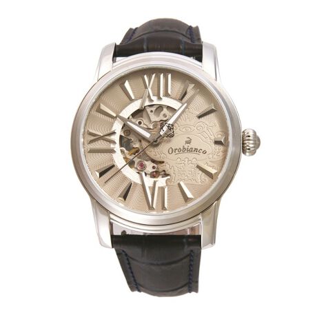 ワンポイントのスケルトンデザインが施された大きめのフェイスに、ローマン数字の文字盤。クラシカルなデザインに遊び心が感じられる「ORAKLASSICA」。
