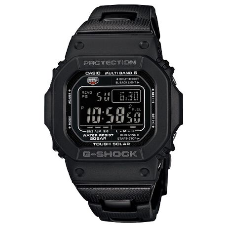 GW-M5610BCは樹脂の中にメタルパーツを埋め込み、軽量化と強度を両立させたメタルコアバンドを採用。反転液晶を用い、全身モノトーンで統一したクールなモデルに仕上げています。