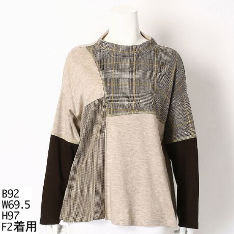 温かみのある毛混のカットソー素材を組み合わせてデザインされた1枚。