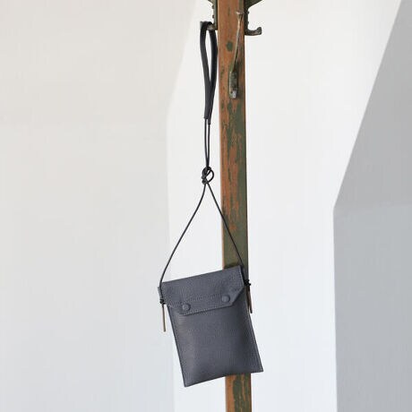 シンプルで無駄の無い洗練されたミニマムデザインのミニショルダーバッグ。定番のブラックに加え上品で柔らかな表情が特徴なグレーの2色展開です。携帯や、財布など軽い荷物を持ち運ぶのに便利なサイズで、旅先等も重宝します。ユニセックス使いや、ギフトなどにもおすすめです。