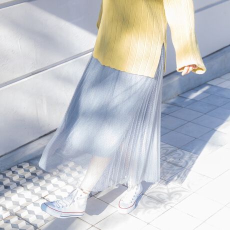 ふわっとしたチュールがスニーカーとのカジュアルなアイテムと相性ばっちり♪