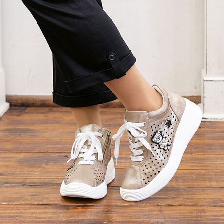 スポーティーなシルエットに、キラキラワッペンで可愛さをミックス致しました♪アッパー部分にパンチングを施すことにより、デザイン性+通気性を兼ね備えました☆甲の内側にファスナーがありますので、脱ぎ履きもラクラクです☆インソールは当ブランドオリジナルの低反発クッションを使用していますので、気持ちいい履き心地です♪